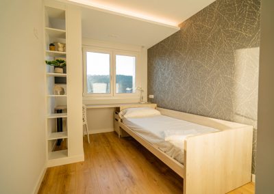 – Habitación con cama nido (2 camas de 90 x 200 cm), escritorio, armarios empotrados y vistas a la ciudad.