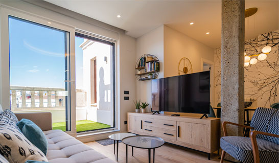 Apartamento nuevo de lujo con una espectacular terraza y diseño moderno y acogedor, a escasos minutos a pie de los principales puntos de interés turístico de la ciudad de Burgos.