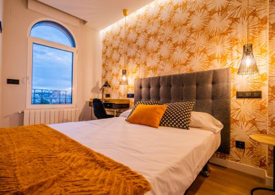 – Habitación con cama doble de 150 x 200 cm, baño privado, armarios empotrados y vistas a la Catedral.