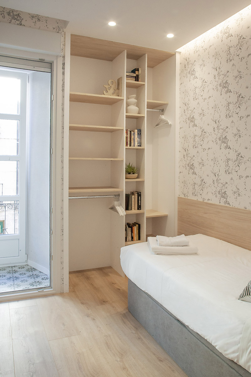 Habitación con 1 cama de 90 x 200 y armario empotrado.