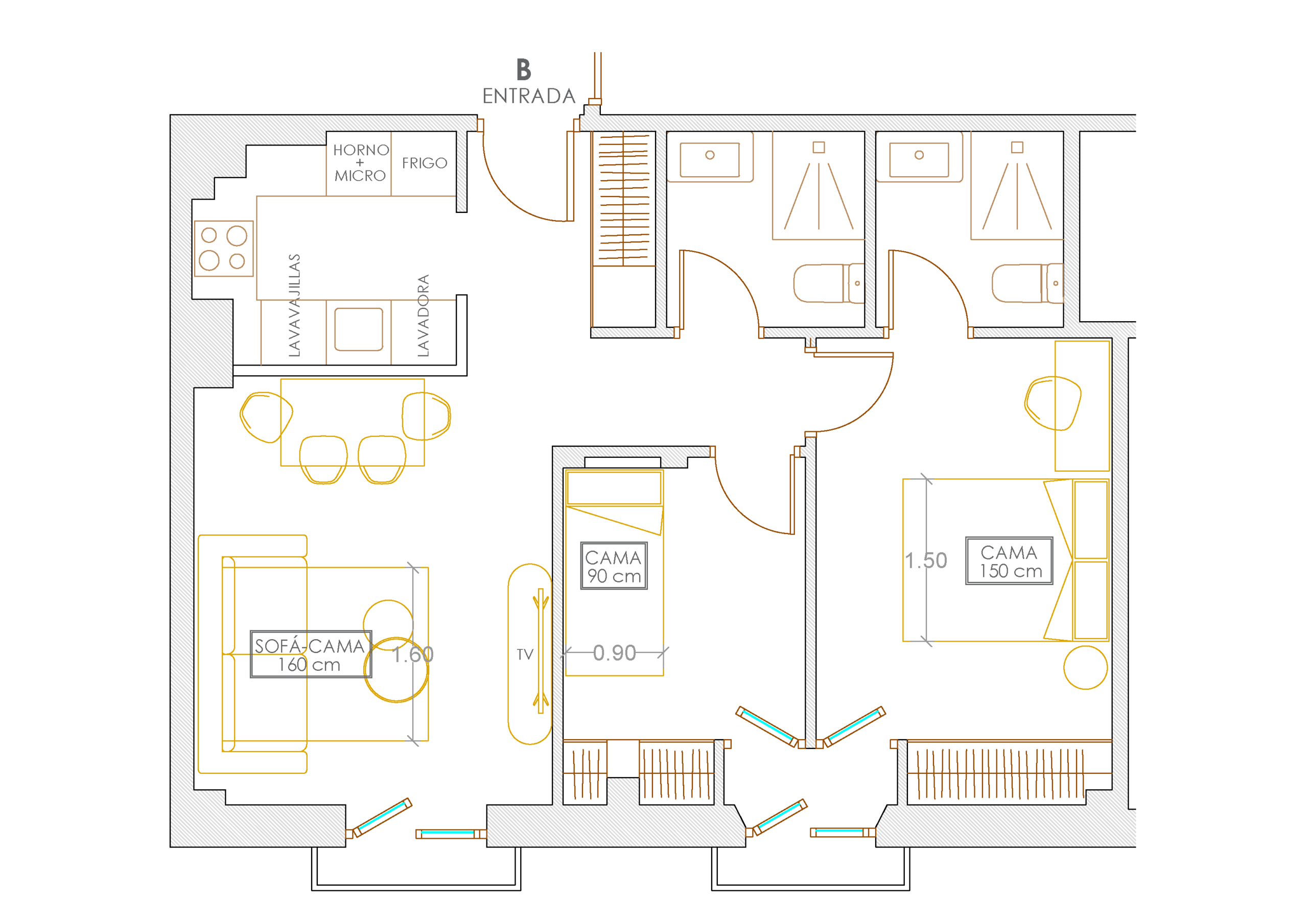 4 personas – 2 dormitorios – 2 camas – 1 sofá cama – 2 baños